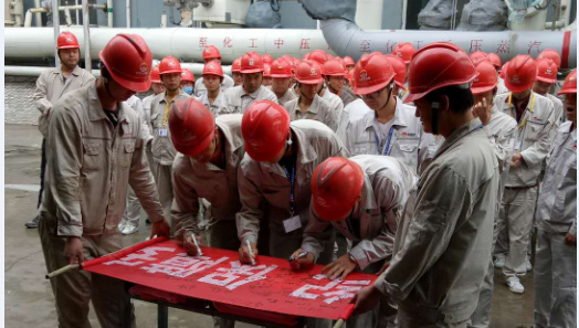 宣誓活動結束后,副總經(jīng)理張建東和尚繼榮率先在印有“安全生產(chǎn),生命至上”的條幅上簽名。隨后,各科室裝置員工按照先后順序依次簽名。