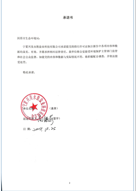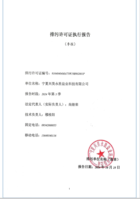 寧夏興昊永勝鹽業(yè)科技有限公司2024年第3季度排污許可執(zhí)行報告